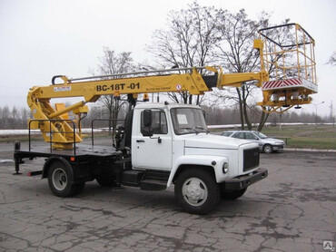 - Газ 3309 с гидравлическим комбинированным подъёмником Snake 189 Smart (высота 18 метров) и поворотной люлькой на 180°;