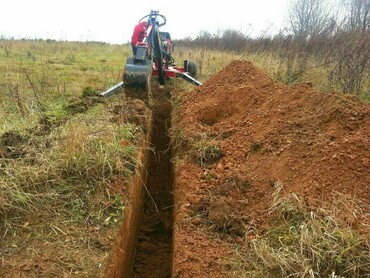Миниэкскаватор возможна оплата при копании траншеи шириной 30см. ( 200руб/ метр -глубиной до 1 метра, ( от 1до 1.5м глубиной 350руб/метр ).