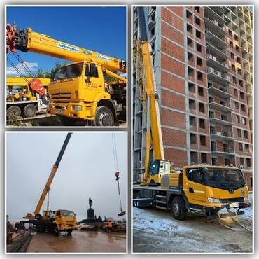 Автокран 25, 32, 50 тонн, вылет стрелы от 21-58 метров.